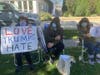 When the caravan reached Greenport, they were met with protesters who gathered along Front and Third streets, making the peace sign and holding posters that said "Love Trumps Hate," "Make America Kind Again," "Dump Trump," "2020 Biden/Harris, No Lies," and "Honk If You Think the President Is A Dumb---."