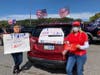 Tina Newman and Mark Schackel, of Aquebogue, came with a vehicle covered with Trump endorsements. "We're here because we want to make a difference," Tina said. "We don't want to cower in our living rooms anymore."