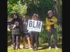 Others chanted "Black Lives Matter" and waved George Floyd posters. Many said "Goodbye now!" and "Go home!" as the caravan passed by.