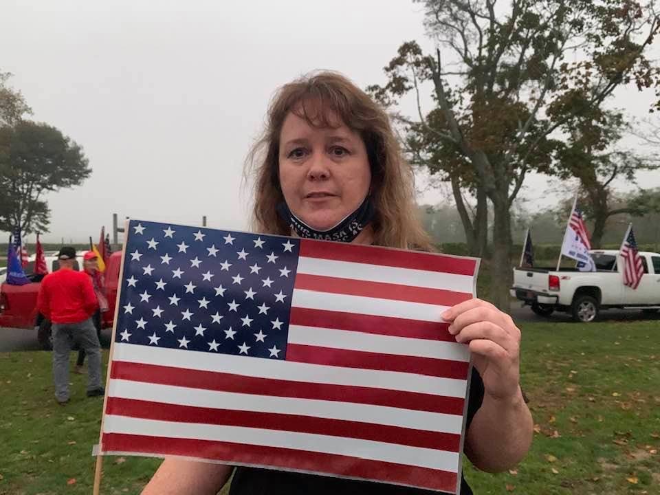 SOUTHOLD, NY — Waving flags and dressed in patriotic colors, a group turned out for the first of a series of "NoFo MAGA-Meetups" held Wednesday at Triangle Park in Southold — where participants shared their thoughts with Patch about why they've decided to take a stand and rally for President Donald Trump before the election on November 3.