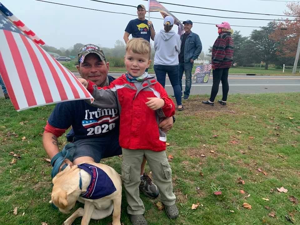 Paul Surozenski of Southold brought his son Lucas, 5, and their puppy Boomer. "We're here to support the President," he said. "We love America."