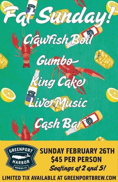 PECONIC, NY — Get into the spirit of Mardi Gras right on the North Fork on Sunday at a Crawfish Boil event held at the Greenport Harbor Brewing Co. in Peconic.