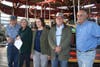 Members of the Greenport carousel committee, along with Bill von Eiff, gathered in Mitchell Park Wednesday for the unveiling of new carousel rounding boards created by artists to depict North Fork scenes.