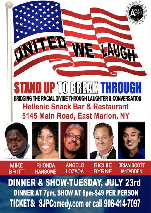 NORTH FORK, NY — As the nation stands divided, with tensions simmering and hate crimes and racism festering, a new comedy show is set to tackle the issues and create a bridge through conversation, understanding, tolerance — and humor.