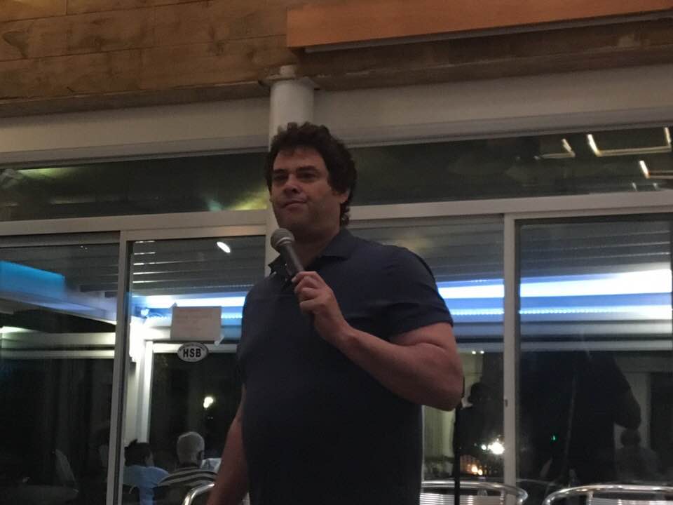The first show, which debuted at the Hellenic Snack Bar & Restaurant in East Marion, featured Byrne and a diverse mix of four well-known comedians —Angelo Lozada, Mike Britt, Rhonda Hansome and Mark DeMayo — representing all sides of the heated racial debate and opening up about their own lives and experiences.