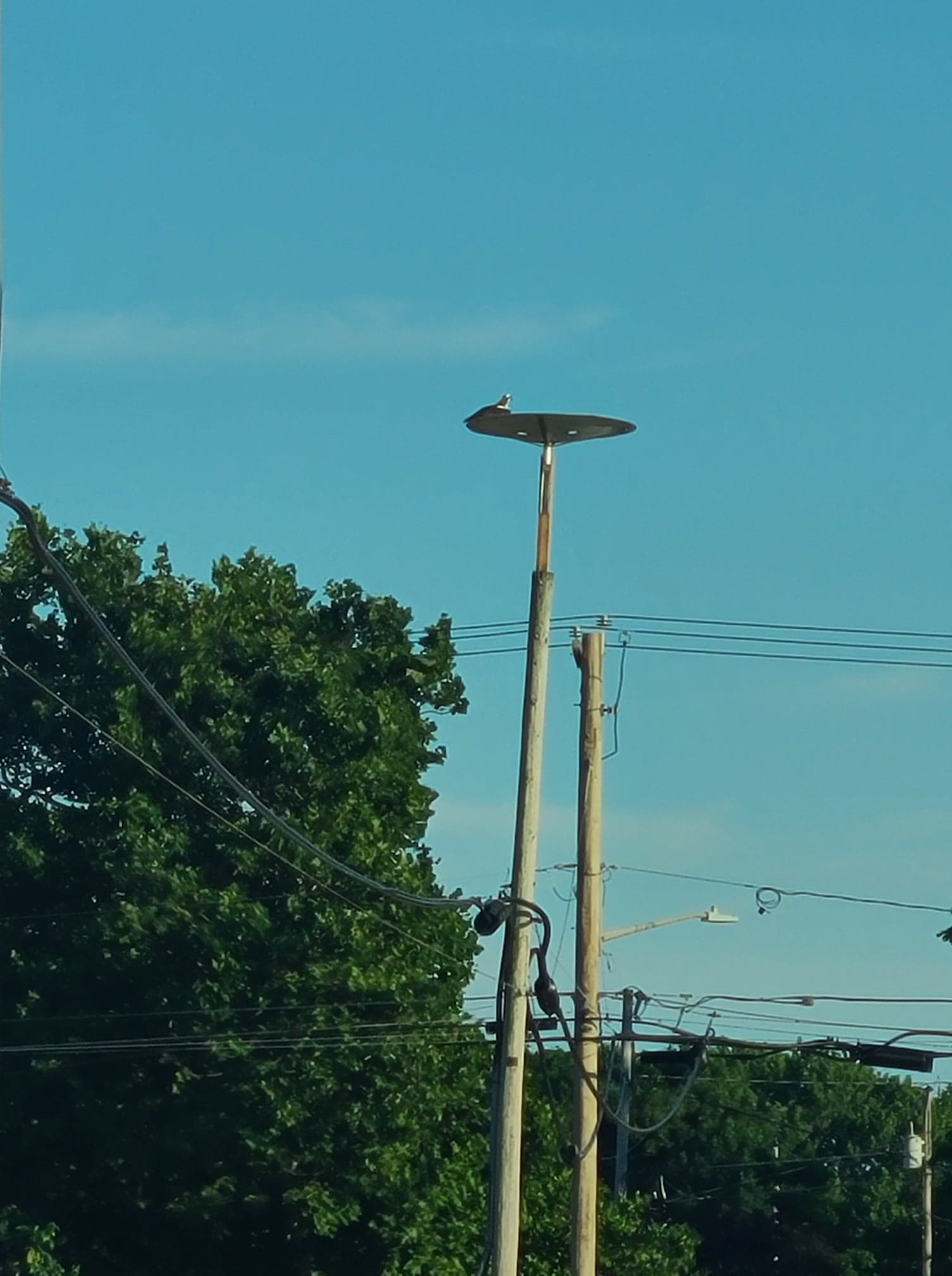 Elizabeth Flagler, a media representative for PSEG Long Island, said an environmentalist explained that since it is after nesting season, "the bird must be a young bird practicing its nesting skills."