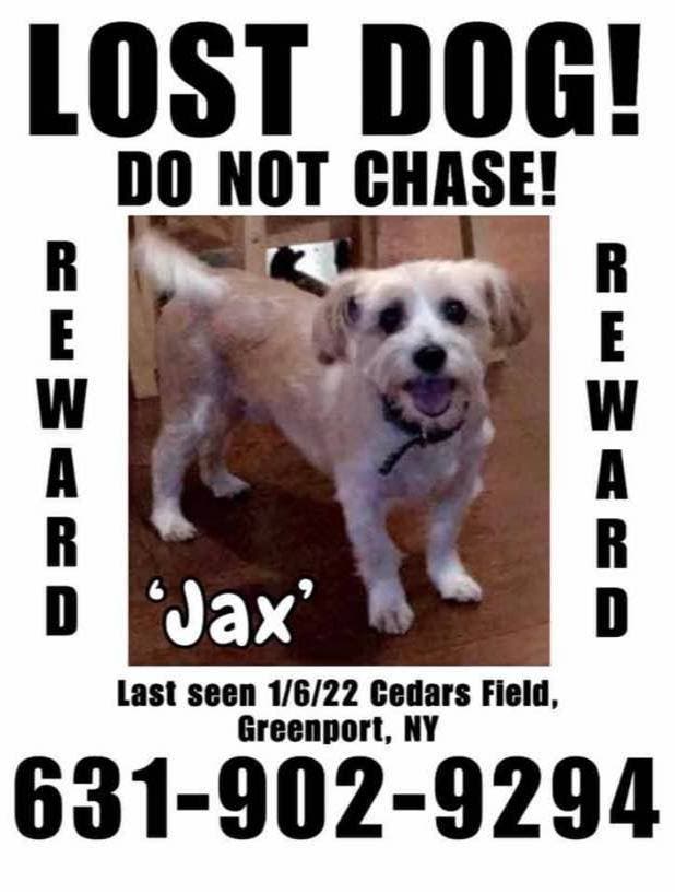 If you see Jax, call 631-902-9294. A reward is offered for his return.