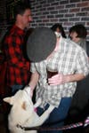 The crowd was joyful as they watched the guest of honor, Jazzy, who was treated to a pile of presents and doggy treats; she was hugged and petted by all invited and even posed for selfies with her adoring fans.