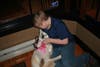 The dog, three years old, looked none the worse for wear; she smelled clean and fresh and was happily surveying the crowd and tilting her head for stroking.