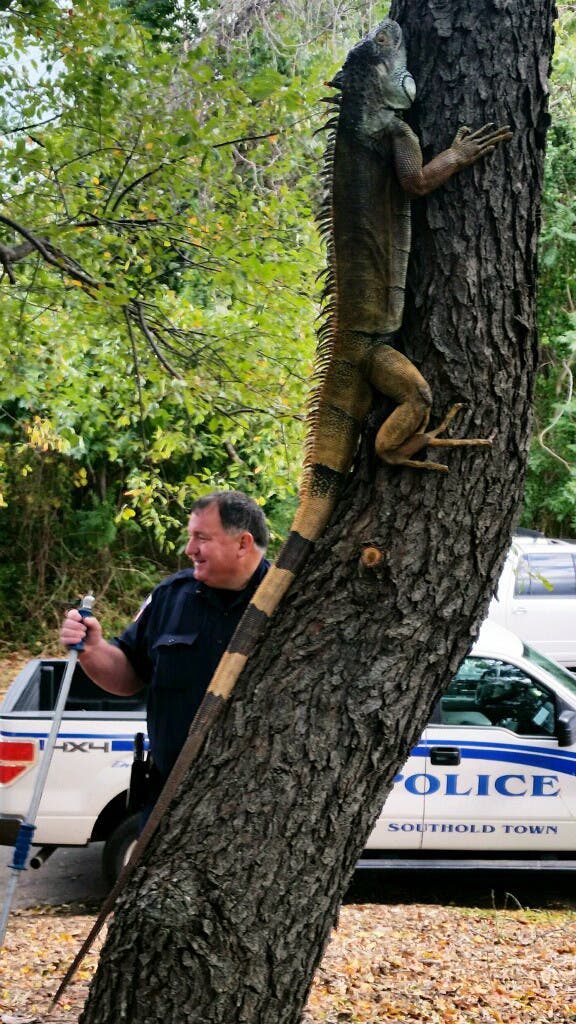 Stephen Husak, 50, of Cutchogue reported finding a four foot bearded iguana in a wooded area by Sound Drive at about 12:40 p.m., police said.