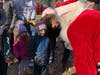 Santa arrived to the delight of scores of wide-eyed children who greeted him at the firetruck and then, lined up to meet him in his beautiful sleigh inside.