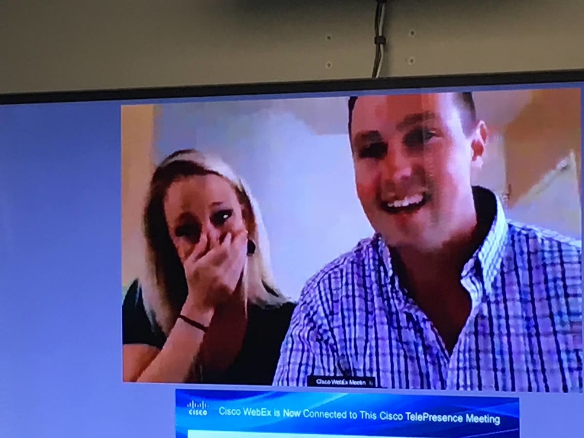 The pair thought they were just being interviewed via a live feed for the contest Monday when suddenly, they were told there was a technical glitch but instead, Peconic Landing staffers, as well as community members, rushed in with balloons to announce they were the winners.
