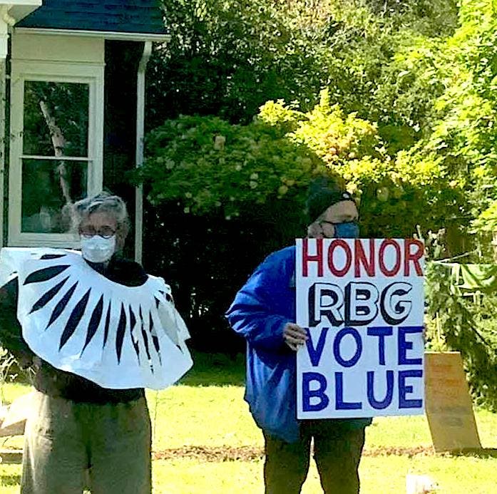 Randy Wade said: "We're struck by how angry the Trumpers were and that a middle finger salute was a frequent statement. Many of us mourn the loss of integrity and competence in our executive branch and the potential Supreme Court extremism. We were heartened to stand with others today working to elect Democrats. This is no election for the sidelines."