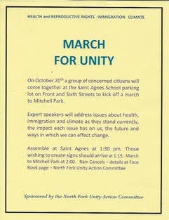 The "We Will Not Be Divided" march and rally, organized by the North Fork Unity Action Committee, will take place on Sunday, October 20, at 1:30 p.m. "to inform and spur civic engagement," according to a release.