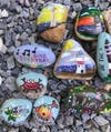 The rocks are adorned with flowers, animals, uplifting words and other painted images —and are all created by artist Marie Lanier of Southold.