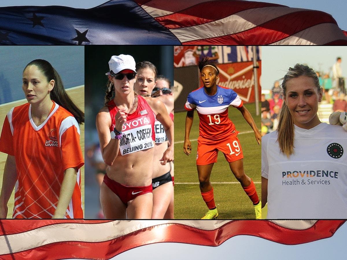 Photo: (l-r) Sue Bird, Maria Michta-Coffey, Crystal Dunn and Allie Long