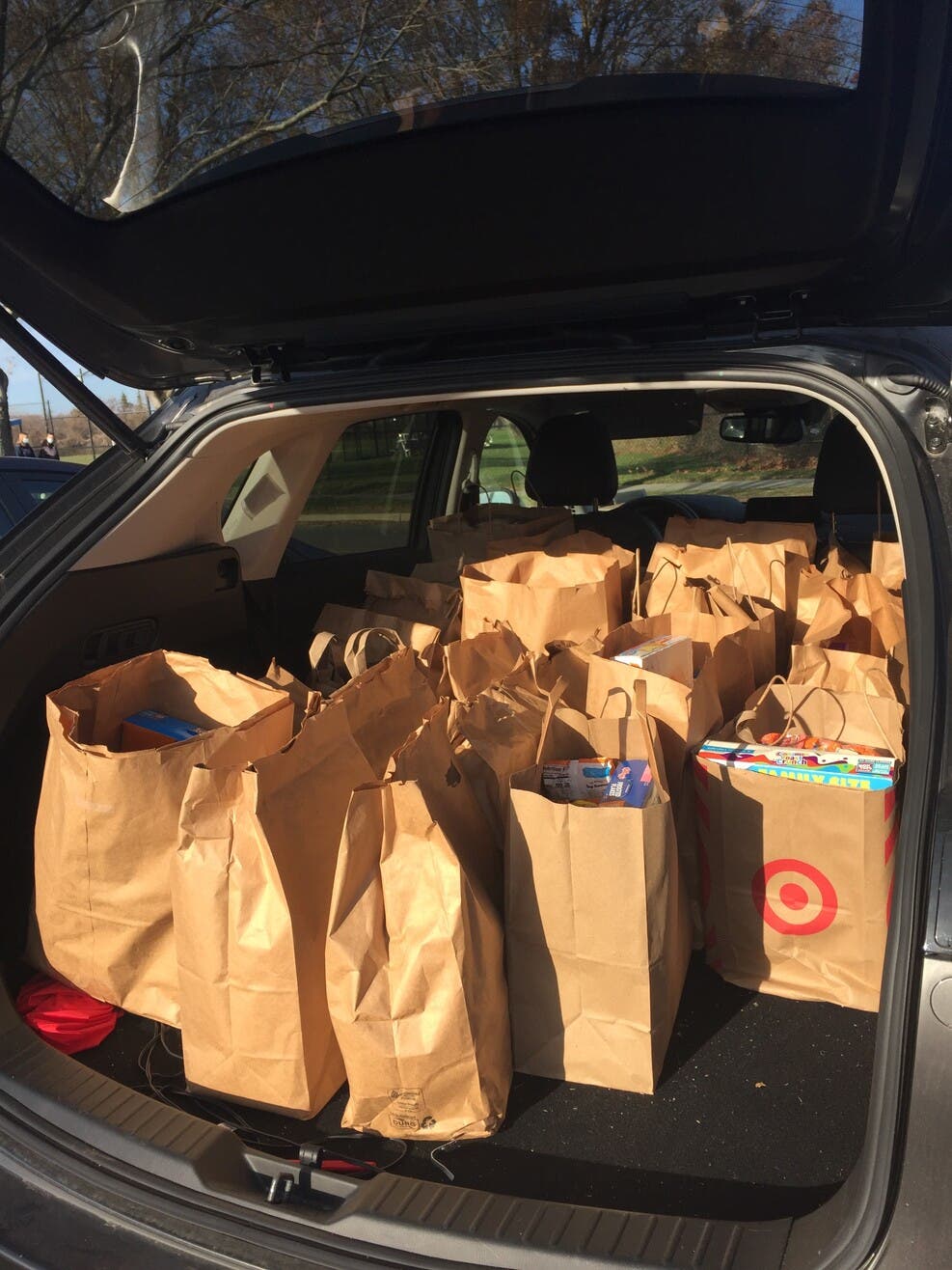 The students brought in brown paper bags filled with non-perishable food items to donate to Long Island Cares Inc. in Huntington Station.