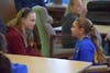 1)Sixth-grader Ashley McQuade (left) and fifth-grader Madeline Bally (right) were buddies for the day at East Northport Middle School.