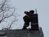 Firefighters went on the roof of the home in 30 mph winds to extinguish the fire Thursday.