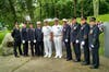 Photo by Steve Silverman. Pictured from left are Ex-Chiefs Nick Feeley, Kevin Dearie, Paul Heglund, First Assistant Chief Tom Boyd, U.S. Navy Captain James Rooney and Commander Kevin Hudson, Chief Brian Mark, Ex-Chiefs Ken Klerk, James Feeley and John Giacoppi.
