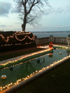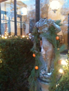 Last evening the annual holiday dinner was held at the Vanderbilt Estate. We recreated the Vanderbilt's favorite night club El Morocco. With blue and white zebra banquets and white Art Deco 8 foot palms and a life size cut out of the Vanderbilt's sitting amongst the guests it made for a fun evening. We also floated silver and blue orbs in the reflecting pool, and dressed the statues which surround the pool in festive garlands!