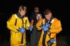 - Photo 2: Centerport Fire Department water rescue team members gear up in exposure suits.