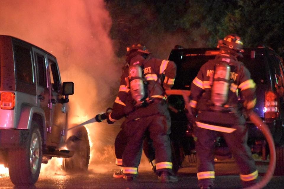 The East Northport Fire Department responded to the fire at the Metro gas station at the intersection of Fort Salonga Road and Laurel Road. Firefighters quickly worked to extinguish the fire, which was in the engine compartment of a 2013 Jeep Wrangler.