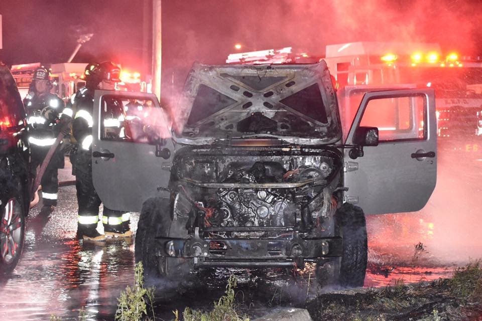 EAST NORTHPORT, NY – No one was injured when a Jeep caught fire at an East Northport gas station late Wednesday night.