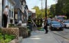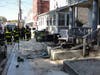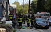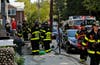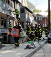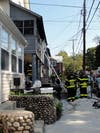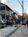 The fire department quickly closed off Scudder from Woodbine Avenue to Union Place and firefighters entered the second-floor apartment as a crowd gathered on the street. The source of the fire was found to be a portable charcoal grill that had been lit in the house. The firefighters threw the grill out of the second-floor window then chopped out a part of the wood structure and watered it down to be sure the fire hadn't spread.