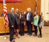 Mangano, a Democrat, was sworn in to her new job shortly after the Town Board meeting ended. The Melville resident was accompanied by her twin 18-year-old daughters, Jessica and Halley. She is married to John Mangano, brother to Nassau County Executive Ed Mangano.