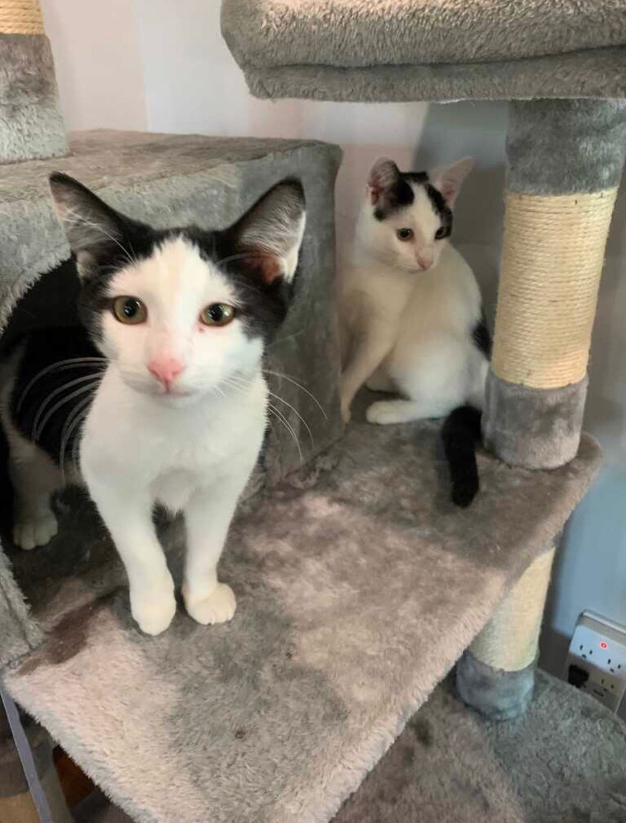 Both are neutered, have all their shots, are litter box-trained, micro-chipped and FELV/FIV negative.