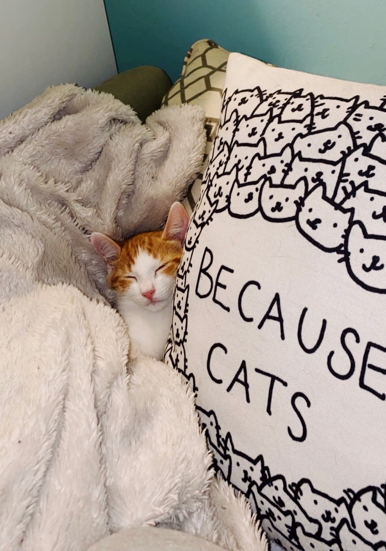 Luke has orange and white fur, along with big eyes. He's considered playful and sweet, and he purrs whenever someone holds him, giving kisses as he snuggles up to them, Wild said.
