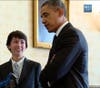 Aidan Dwyer presents his solar panel array to President Obama at second annual White House Science Fair in February.