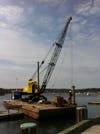 tiny tugboat, the Active, became a pushboat recently when it served as the momentum for the boatyard's crane and a float to make its way to Northport Village Dock to prepare the waterfront for the 2011 season.