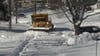 Some streets are clear while others are clogged by snow.