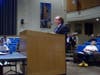 Resident Lawrence Leek spoke at a public hearing over a proposed allocation of $550,000 from the town to oversee improvements to manholes, blowers and sewer lines in the Huntington Sewer District. He requested that the board review the costs of the sewer district to taxpayers, suggesting that the taxes reflect the usage of residents rather than having a flat tax fee for everyone.