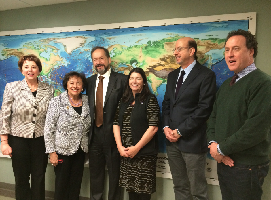 PHOTO (L-R): Rockland County Legislator Nancy Low-Hogan; Congresswoman Lowey; Arthur L. Lerner-Lam, Lamont Deputy Director; Maureen Raymo, Director, Lamont Core Repository; Carl Brenner, Director of IODP U.S. Science Support Program; Dave Goldberg, Associate Director, Lamont Marine and Large Programs.