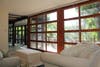 In addition to the two bedrooms, studio and the full bath on the upper level, there is a full kitchen, dining room and family room in the lower level. The iconic garage doors are again present on the lower level, as well as another long wall of glass and aged barn board. Handmade cream colored tile floors, allegedly made by a friend of Johns, cover the kitchen and dining room and warm all day in the glass-filled room, making it warm and inviting. A fireplace completes the setting.