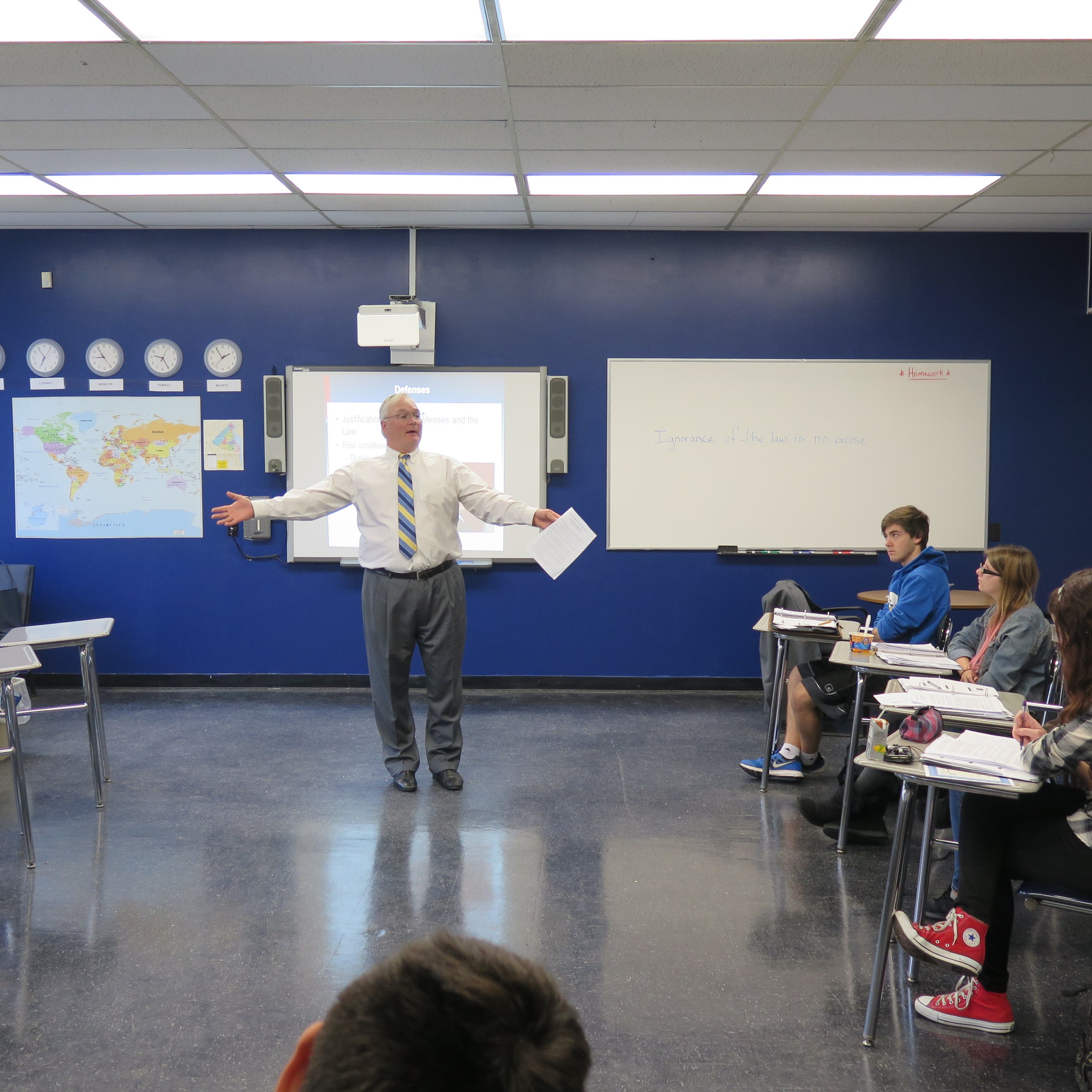 Topics of discussion included the Fourth, Fifth and Sixth Amendments, with particular focus on civil liberties and our protections against unreasonable searches and seizures. Mr. Humbach detailed several high-profile legal cases, which provided real-life examples to enhance and support classroom learning.