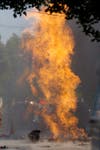 Petriello and Reid both said Thursday's heat wore down firefighters, and volunteers from different area fire departments took turns manning hose lines to prevent exhaustion. As firefighters were working, utility workers assisting with the efforts to battle the gas line problem were affected by the heat.