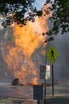 Orange and Rockland Utilities spokesman Michael Donovan said the massive gas fire broke out when a safety device came loose as an O&R subcontractor was working on the gas main. O&R is working on that run under the length of Broadway in downtown Nyack.
