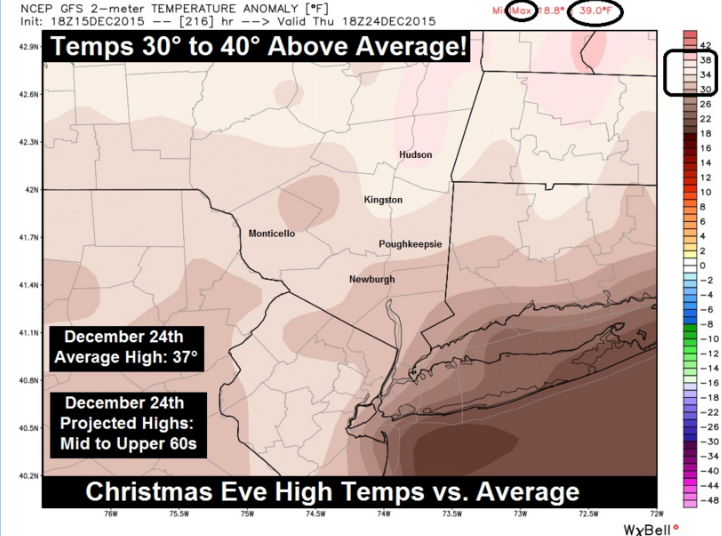 “the big news today… is that there will be no White Christmas this year,” says Bill Potter of Hudson Valley Weather.