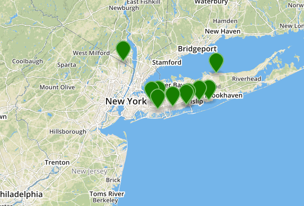 Yorktown, Nanuet, Rye, Eastchester, Tarrytown, Suffern, Dobbs Ferry, Mount Kisco, Peekskill, Mamaroneck, Harrison, Yonkers, New Rochelle, Ossining, White Plains, Scarsdale, Haverstraw, Port Chester, Spring Valley, Kiryas Joel.