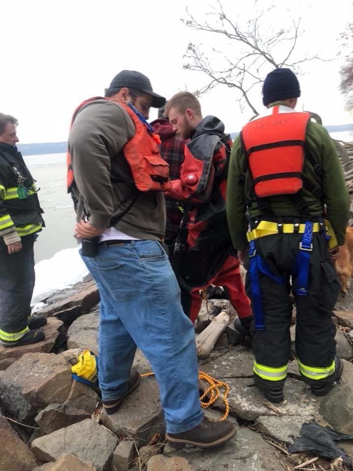 The call came in just after 4 p.m. to Piermont. The smallest of three dogs being walked on the shore had run out on the ice and gotten cut off from shore.