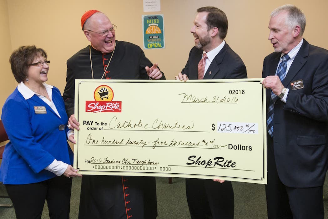 The donation was presented recently to Cardinal Timothy Dolan by ShopRite officials.