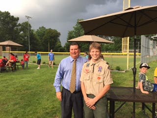 Clarkstown town Supervisor (and Eagle Scout) Alex Gromack joined Life Scout Patrick Naughton as he dedicated his Eagle project to the West Nyack Little League.