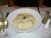 We started with the escargot, served piping hot and plump with a spinach puree and garlicky breading; hot baguettes, perfect for soaking, accompanied. Soft shelled crab, another one of my seasonal favorites, were sautéed to a delectable crispness and appointed with a shoe string potato stick bundle atop. The goat cheese ravioli was cooked to a perfect al dente and plunked into a rich velvety cream bath. A brimming bowl of tiny mussels steeped in white wine and shallots was a hit, as was the shredded duck leg confit Provençale with mashed potatoes and a mushroom jus, crisp and moist as duck should be. We topped the meal off with dreamy deserts; light crème puffs and hot chocolate molten cake.
