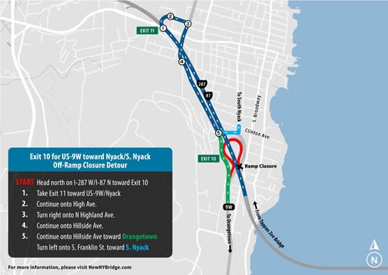 Drivers will be directed to use exit 11 (Nyack – South Nyack – US Route 9W).