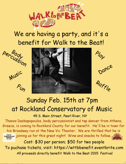Walk to the Beat presents an evening with body percussionist and tap dancer, Thanos Daskalopoulos, from Athens, Greece who is in town for his Broadway run at the New Vic Theater. We are thrilled that he is joining us for this great night!