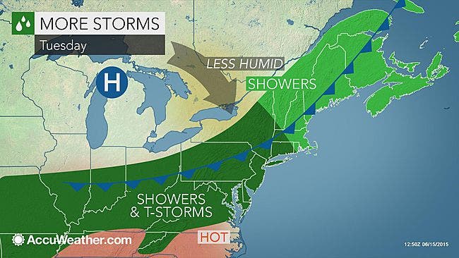 “Tuesday looks similar in some ways to Monday. Clouds will hold pretty tough, and we’ll run the risk of some afternoon showers and storms,” said Bill Potter of Hudson Valley Weather.